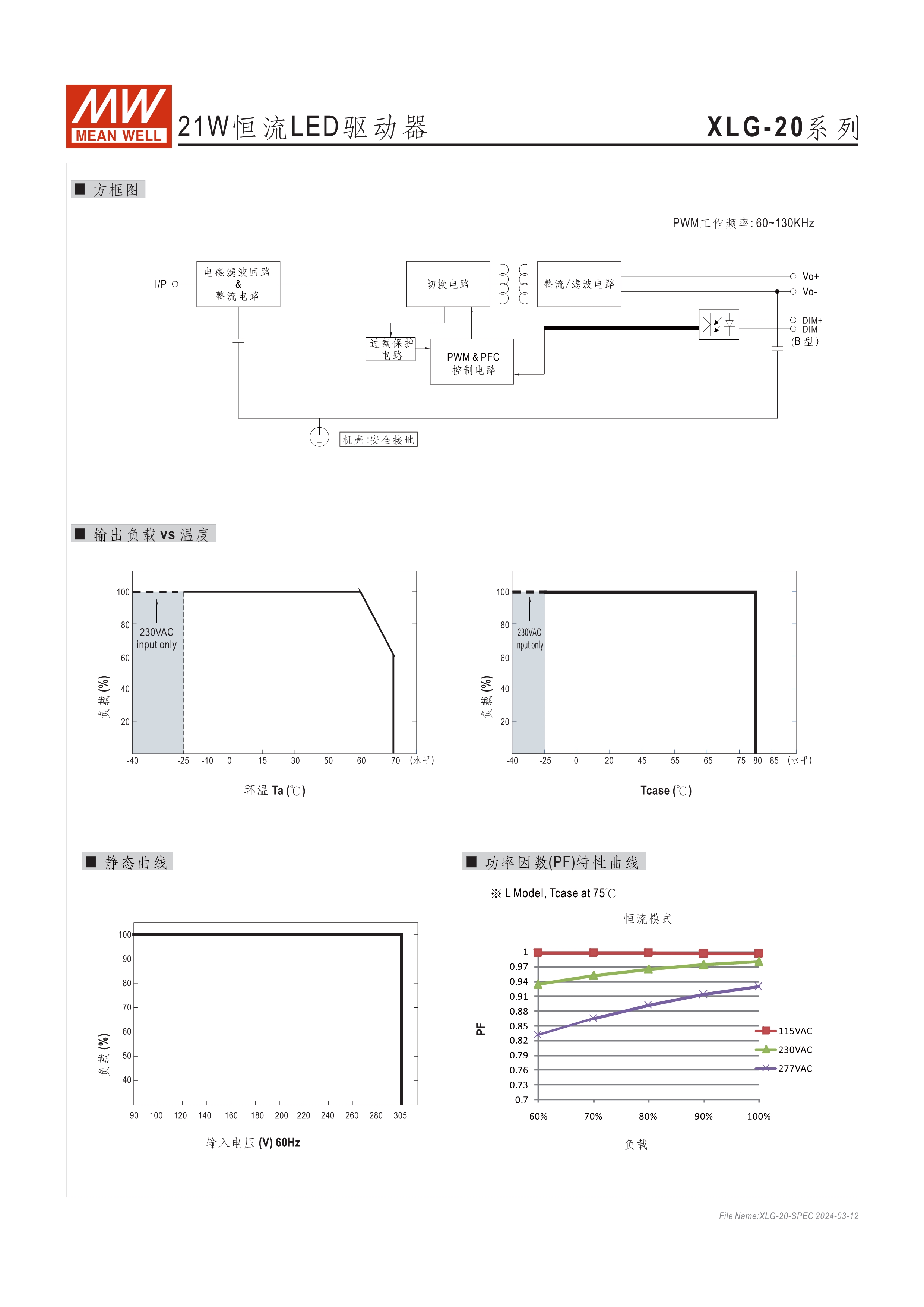 寬電壓輸入范圍100~305VAC (XLG-20為90~305VAC) 寬電流輸出可調整恒功率設計 (XLG-20為恒流模式) 主動式PFC設計及輸出效率可達90% 調光功能: 三合一 / DALI 保護功能:短路、過電壓、過溫度 雷擊保護耐壓設計6KV(L/N-FG)/4KV(L-N); XLG-20為4KV(L/N-FG)/2KV(L-N) 5年保固