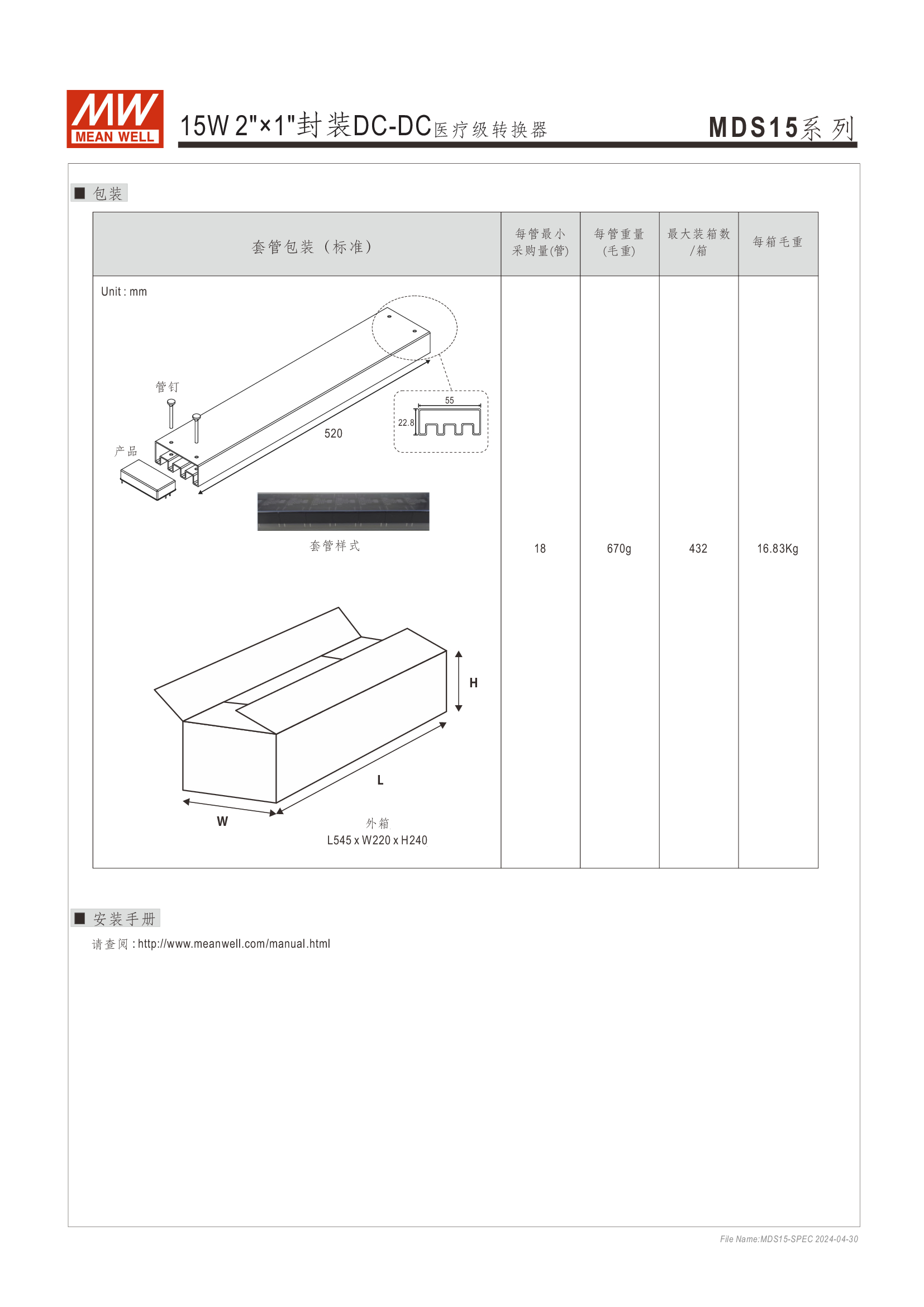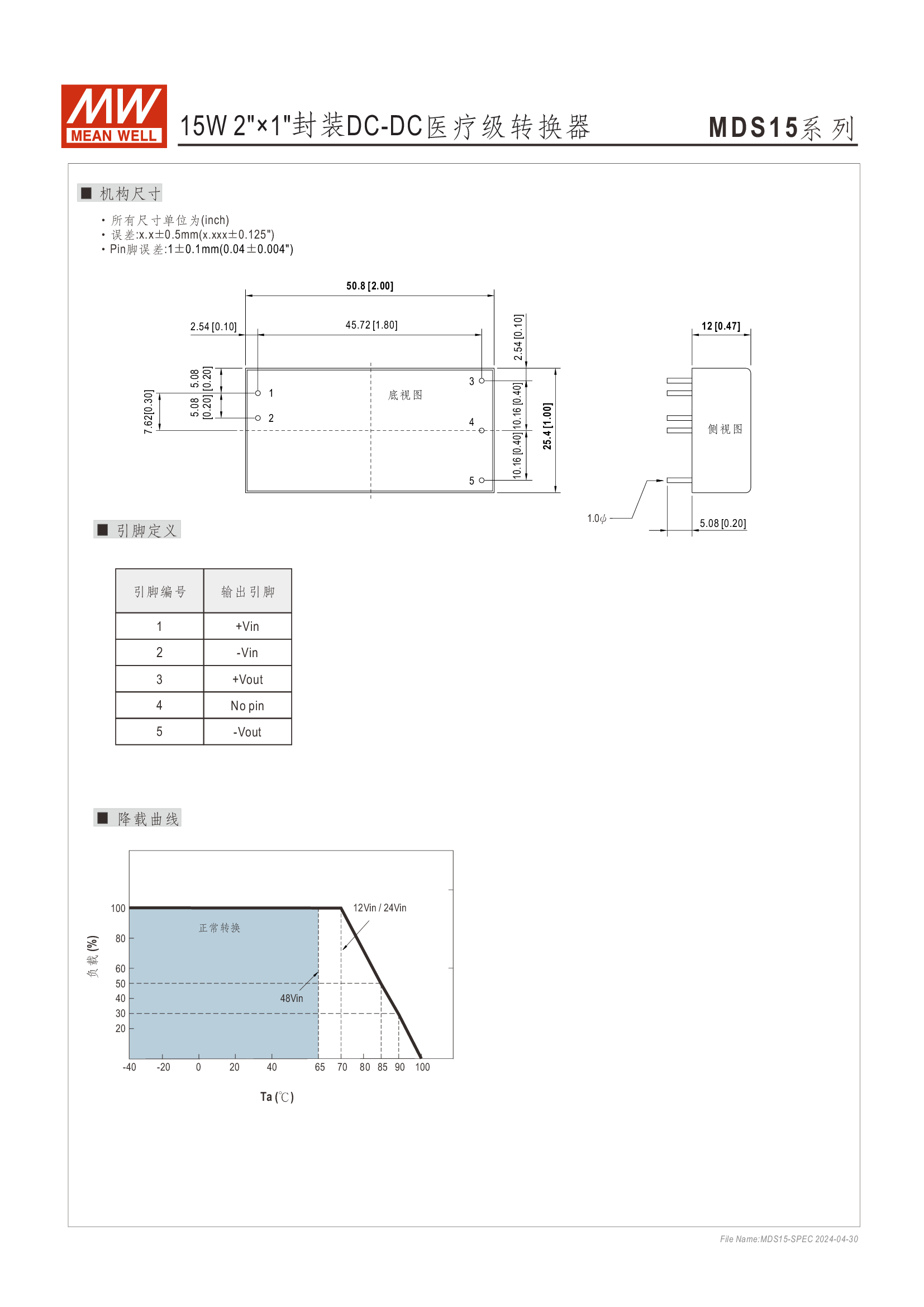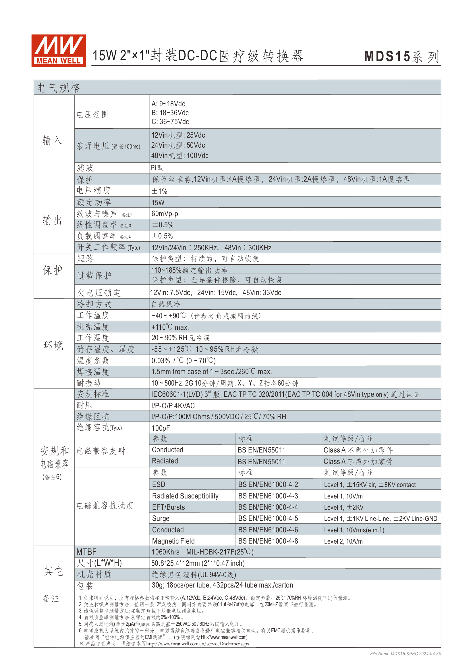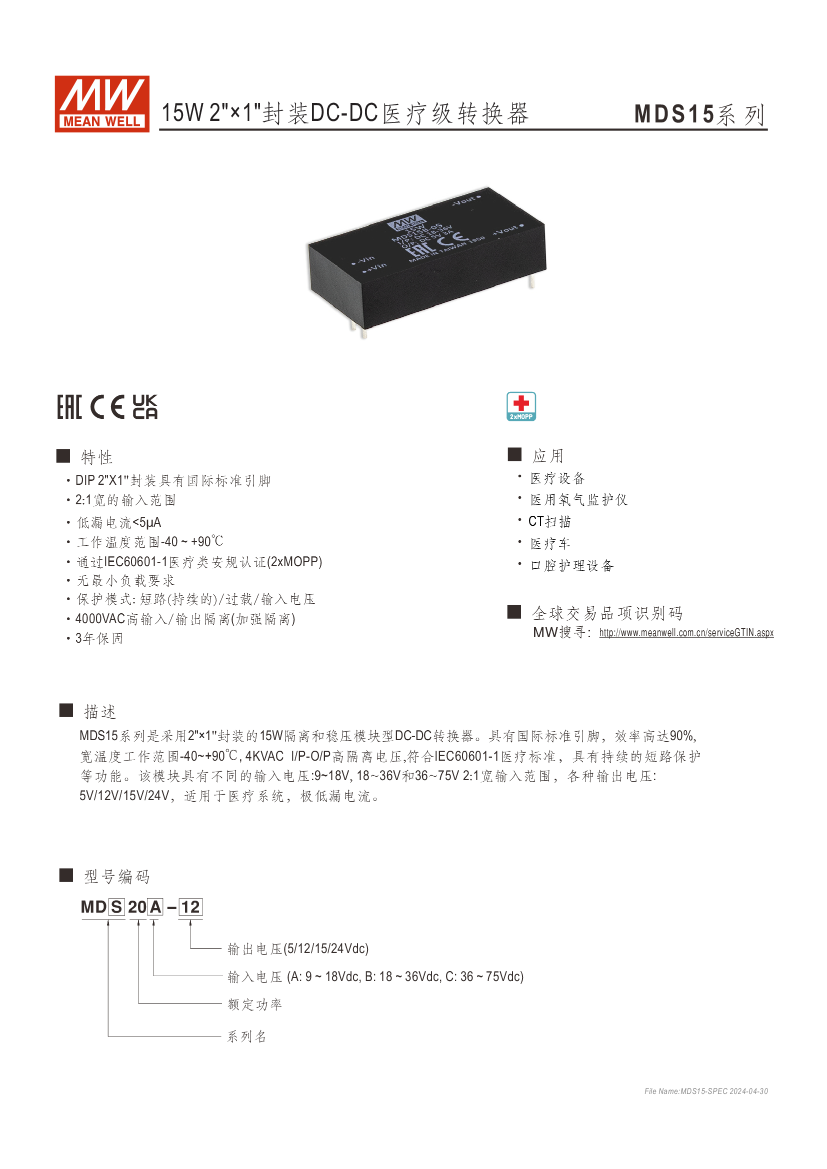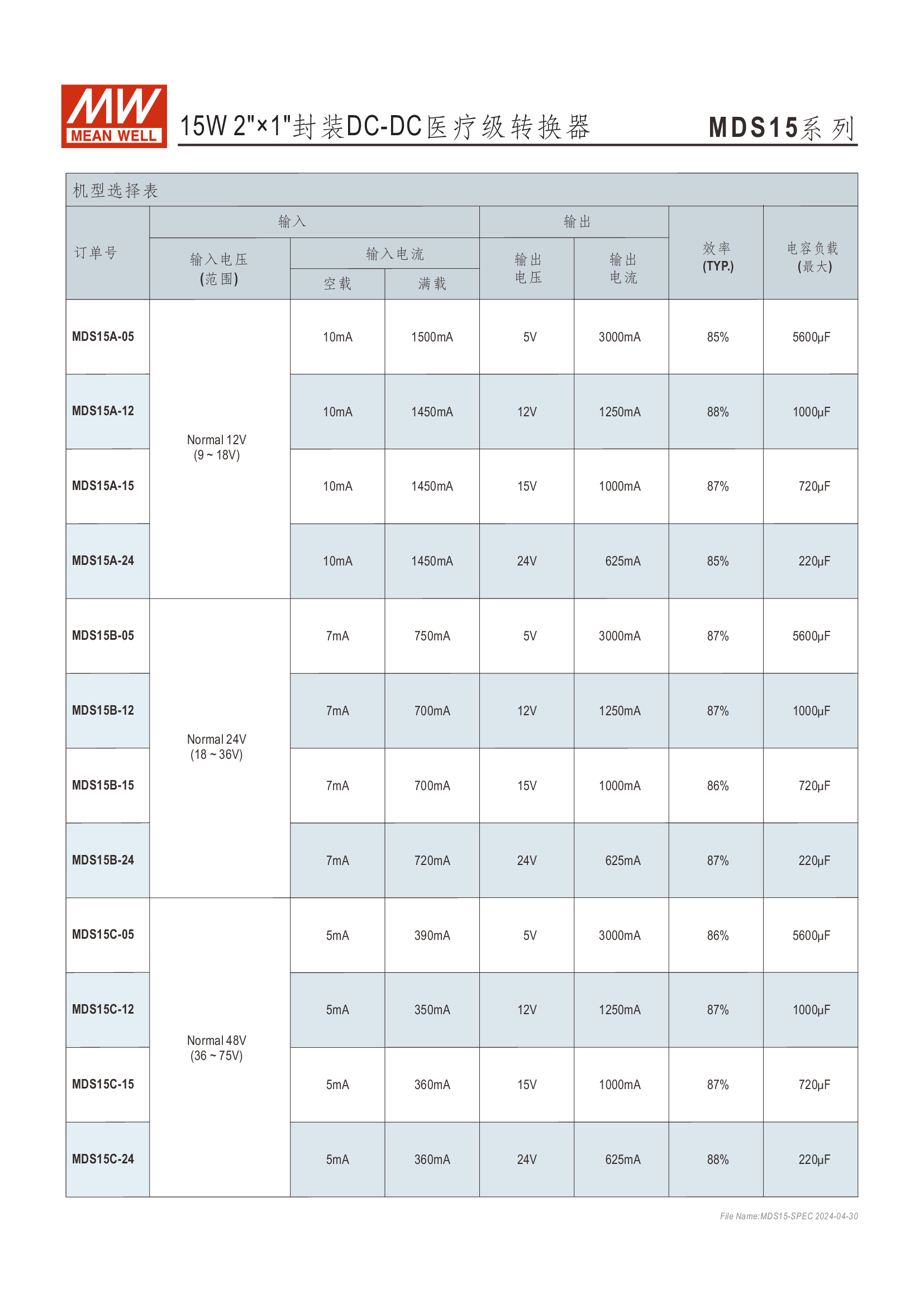 模塊型快選表 2" x 1" 單排封裝國際標準引腳 工作溫度:-40 ~ +90℃ (不需降載) 通過醫(yī)療認證ANSI/AAMI ES60601-1 (2×MOPP) 超低病患泄漏電流 < 5μA 3年保固期