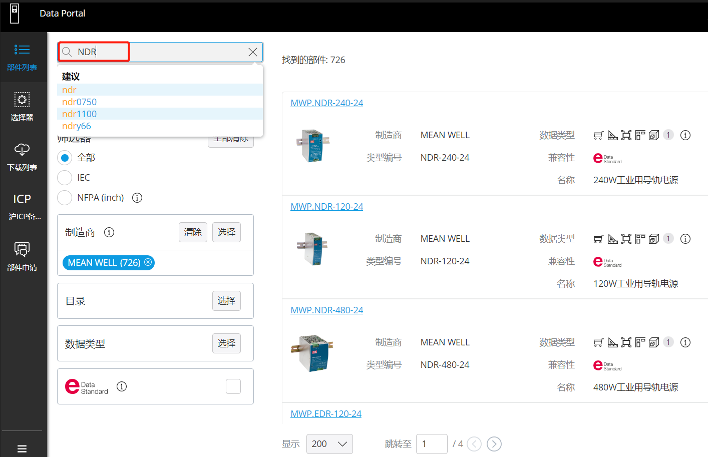 在Eplan Data Portal平臺(tái)中,點(diǎn)擊制造商選擇按鈕,然后選擇明緯Logo,點(diǎn)擊應(yīng)用。