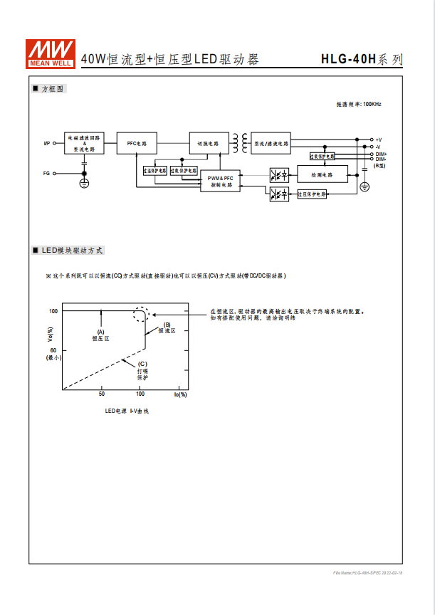 瓦數(shù): 40W~600W 功能特性 90~305VAC交流輸入,內(nèi)建主動(dòng)式功率因子矯正功能(active PFC) 96%超高效率(HLG-600H) 金