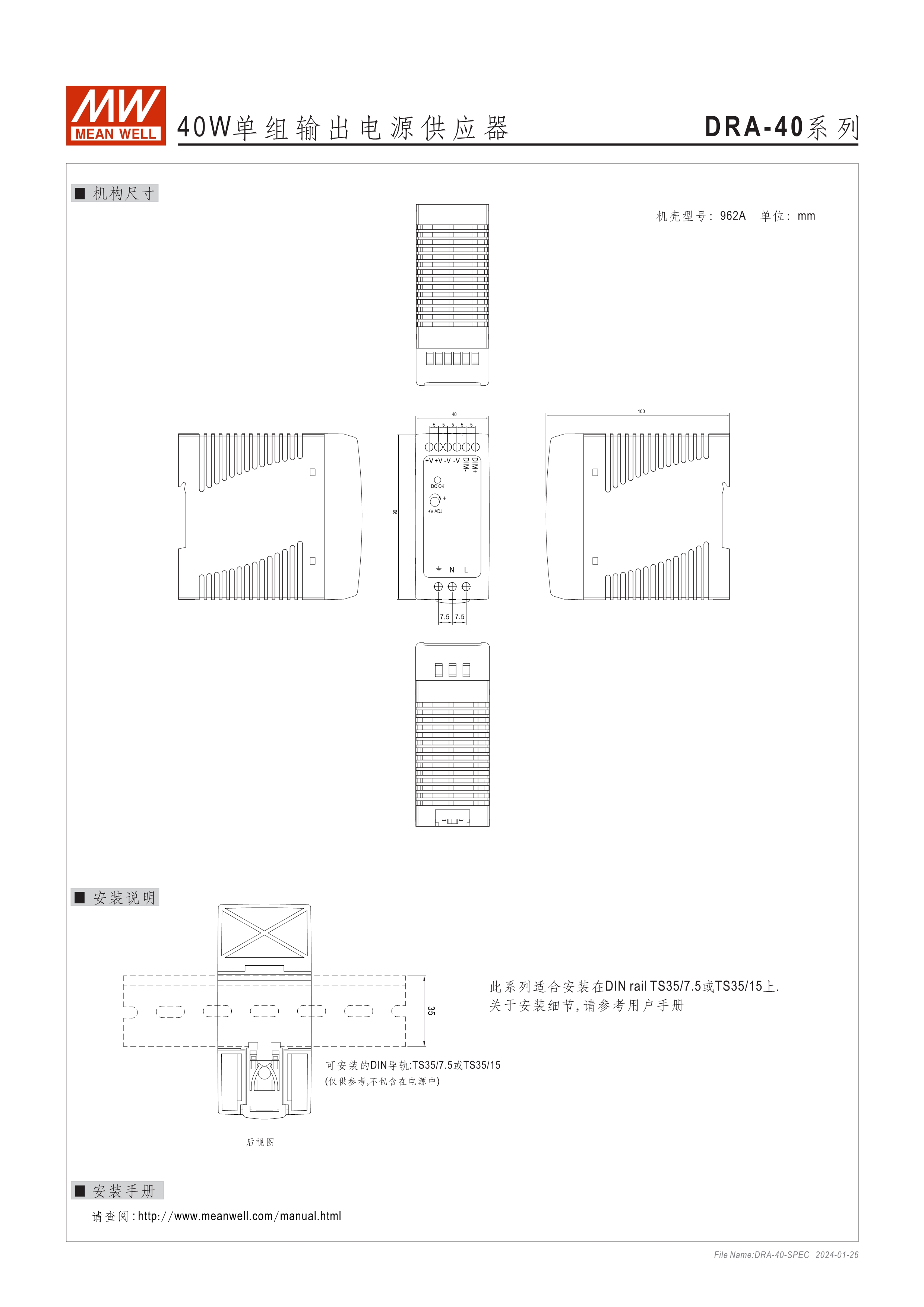 塑料機(jī)殼 單相,全范圍輸入 輸出電流可透過1~10VDC, PWM信號或電阻調(diào)設(shè)于原額定值的 10~100% 適合安裝于DIN Rail TS-35 / 7.5或15 適合于視覺檢測設(shè)備及植物栽培系統(tǒng)