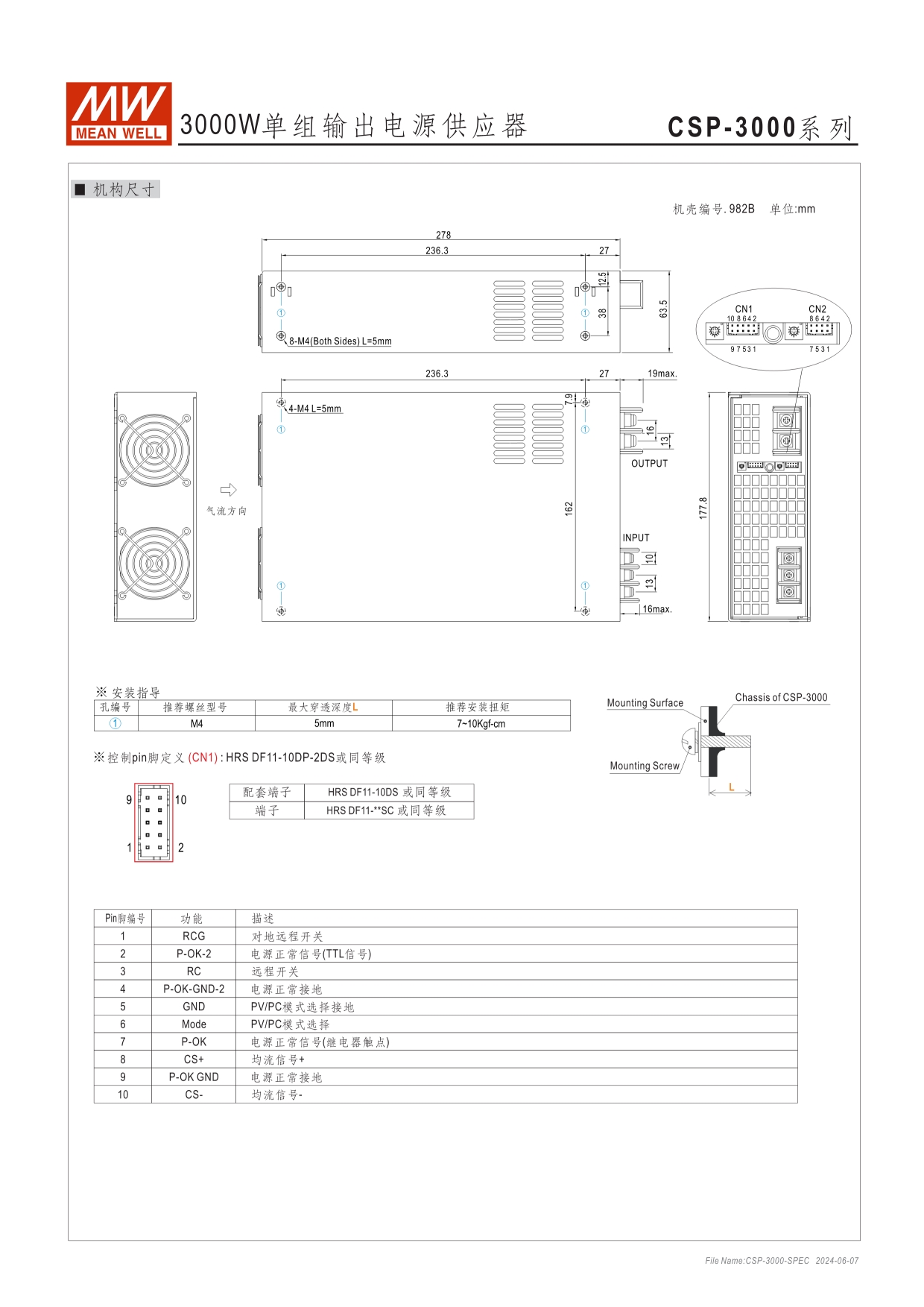 180~264VAC交流輸入 內(nèi)置主動式PFC功能 高效率達93% 內(nèi)建直流風(fēng)扇強制氣冷 可程序化輸出電壓/電流 主動式均流設(shè)計達9000W(2+1) 內(nèi)建遠程開關(guān)控制 /輔助電源/輸出OK訊號 保護種類:短路、過電流、過電壓、過溫度、風(fēng)扇失效 5年保固