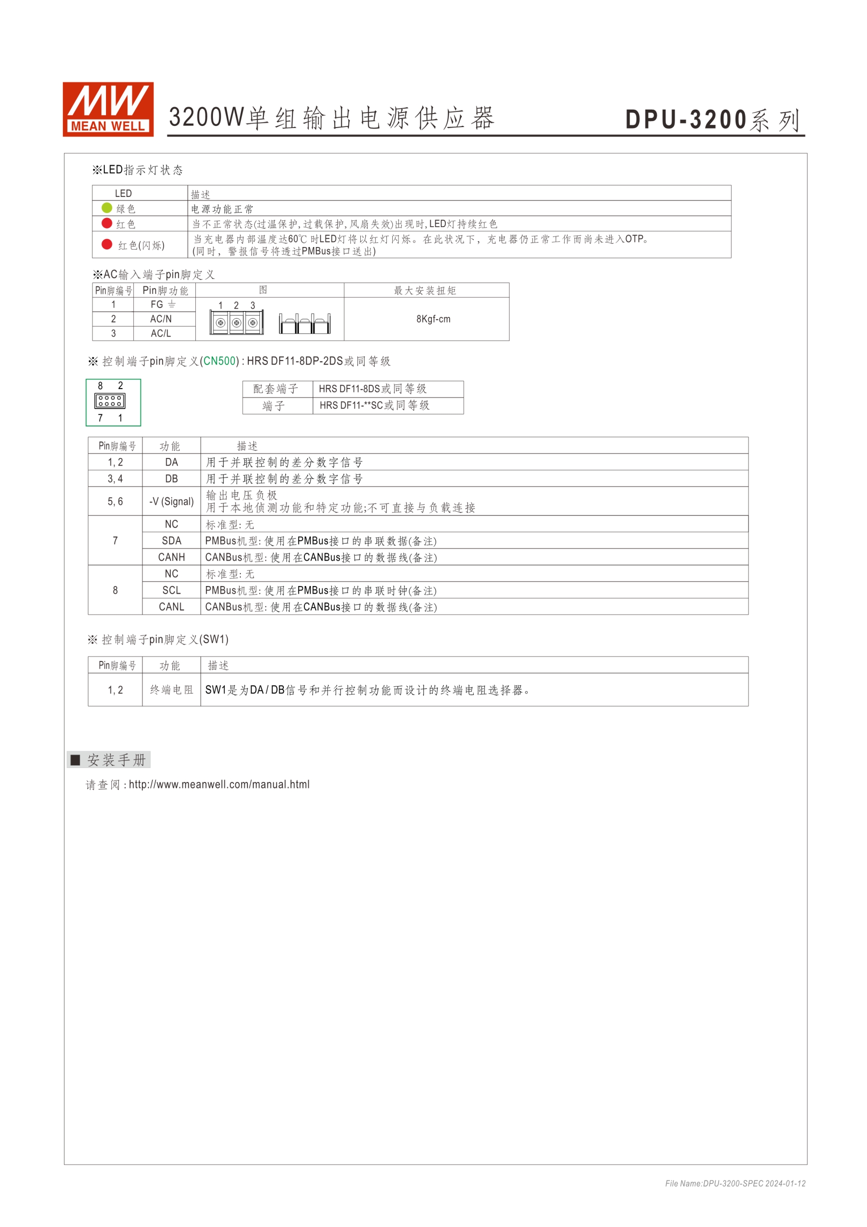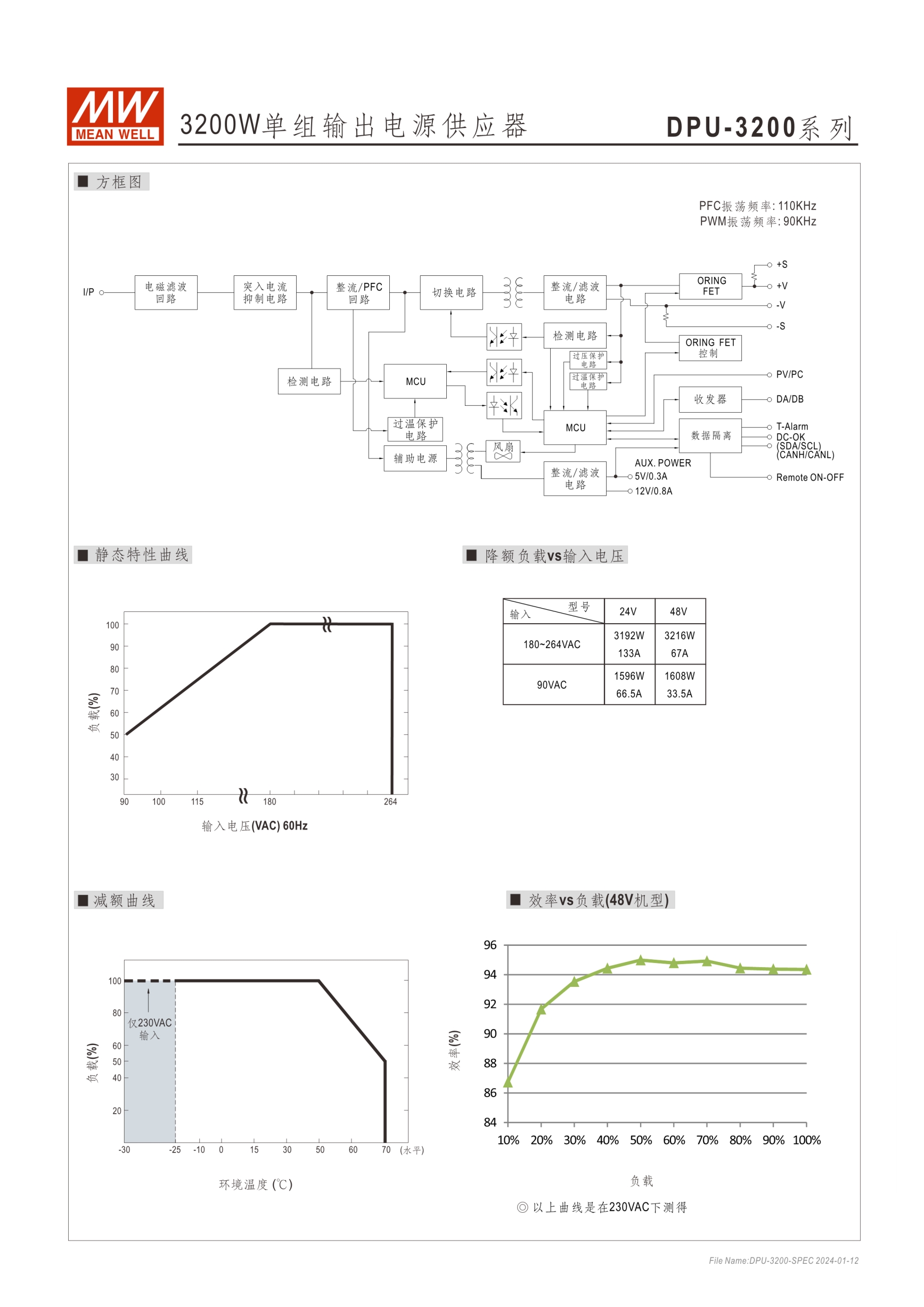 環(huán)球交流輸入/全局輸入電壓 內(nèi)建主動式功率因子矯正功能(Active PFC) 交換效率高達94.5% 直流散熱風(fēng)扇強制氣冷 輸出電壓與恒功率可調(diào)功能 內(nèi)建Or-ing FET,支持熱抽換/插拔功能 保護機制: 短路/過負載/過電壓/過溫度保護 可選配三防漆 認證安規(guī): UL/TUV/EAC/CE/CB 5年保固