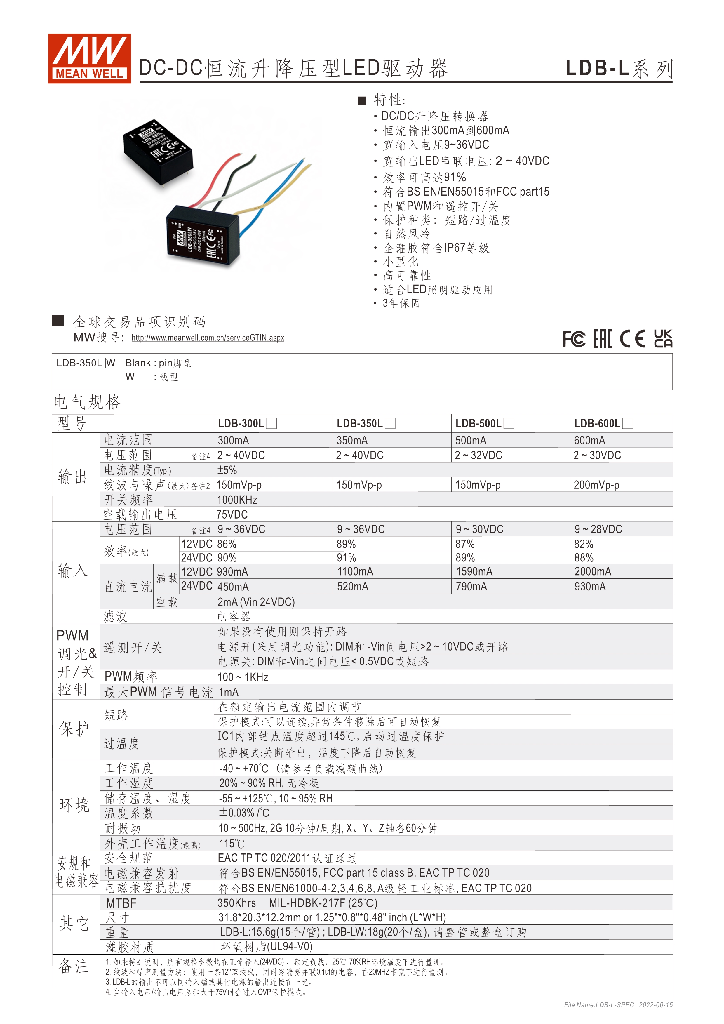 DC/DC升降壓式恒流輸出LED驅(qū)動(dòng)器 91%高效率 不需外接任何組件即可符合EN55015及FCC 具PWM調(diào)光及開關(guān)遙控功能 適合降壓-升壓型照明系統(tǒng) (需插件于PCB母板上) 具備插pin及出線兩種型式