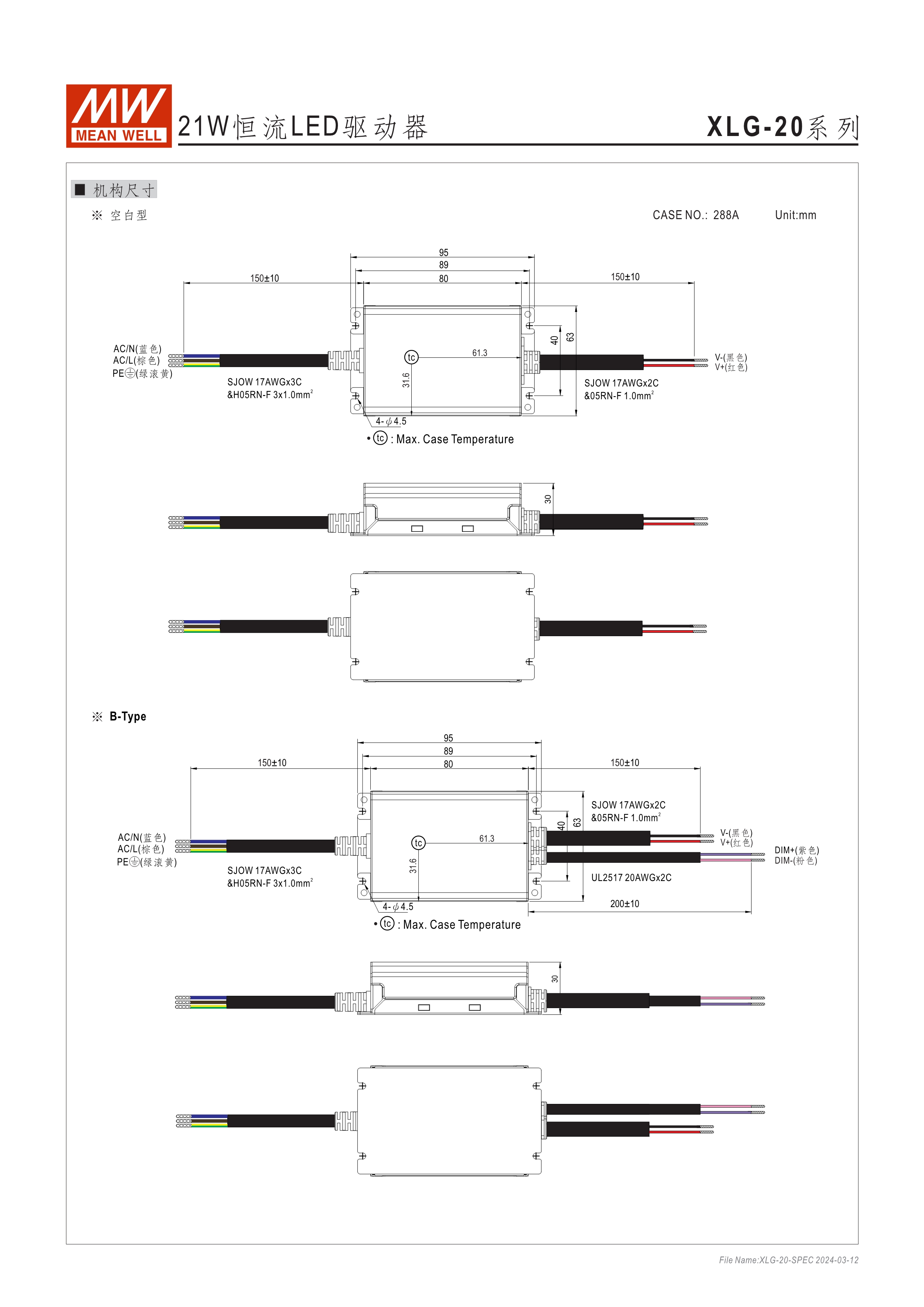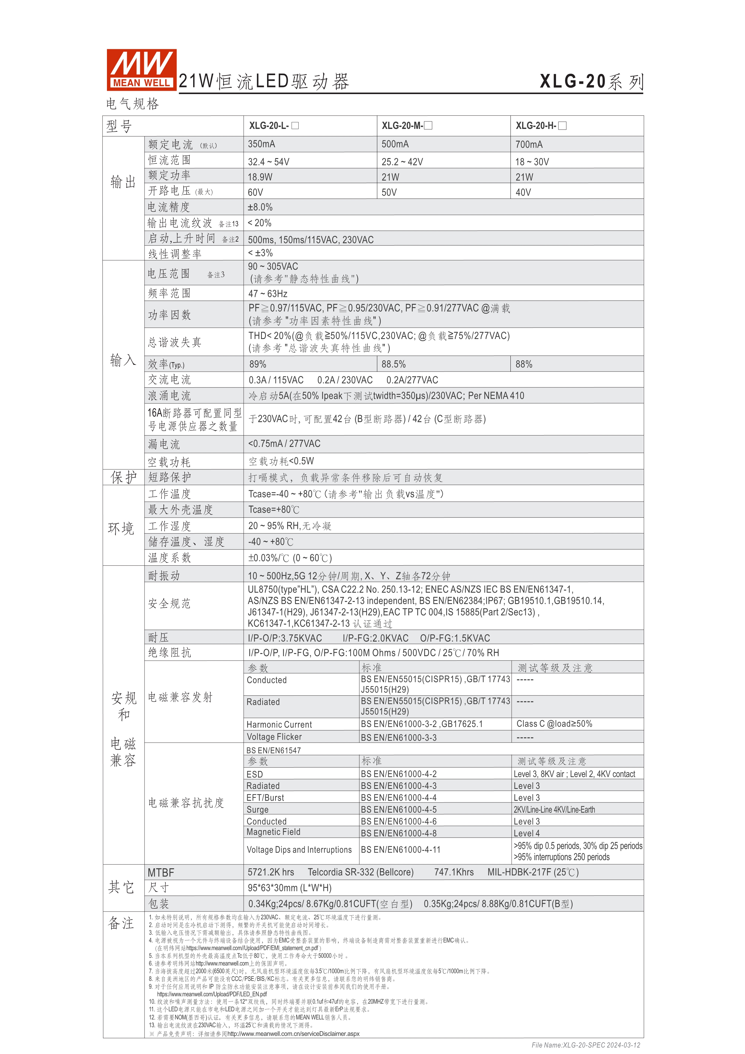 寬電壓輸入范圍100~305VAC (XLG-20為90~305VAC) 寬電流輸出可調整恒功率設計 (XLG-20為恒流模式) 主動式PFC設計及輸出效率可達90% 調光功能: 三合一 / DALI 保護功能:短路、過電壓、過溫度 雷擊保護耐壓設計6KV(L/N-FG)/4KV(L-N); XLG-20為4KV(L/N-FG)/2KV(L-N) 5年保固