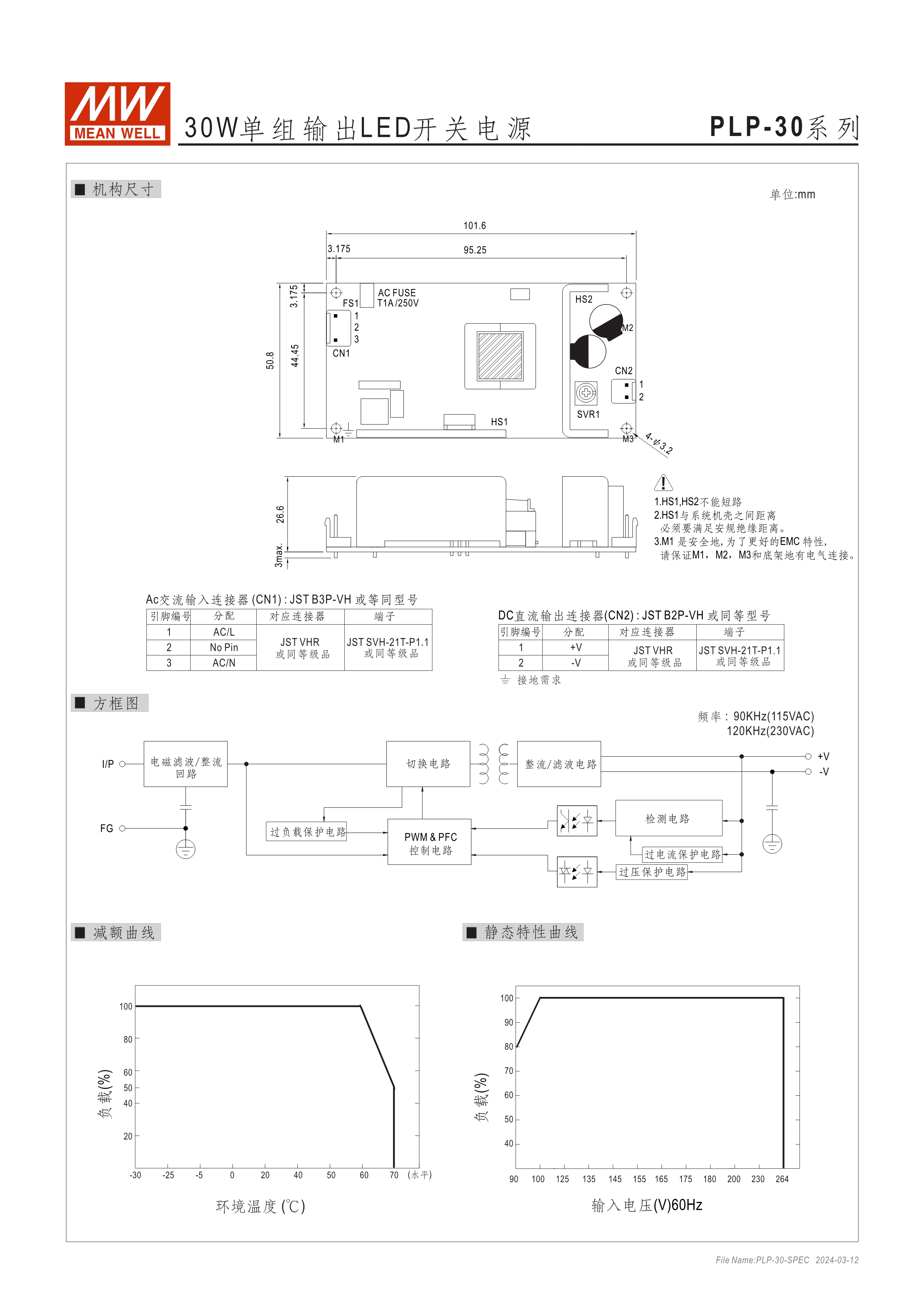 90~264VAC交流輸入, 內建主動式功率 因子矯正功能(active PFC) 適合內置于LED照明系統(tǒng)