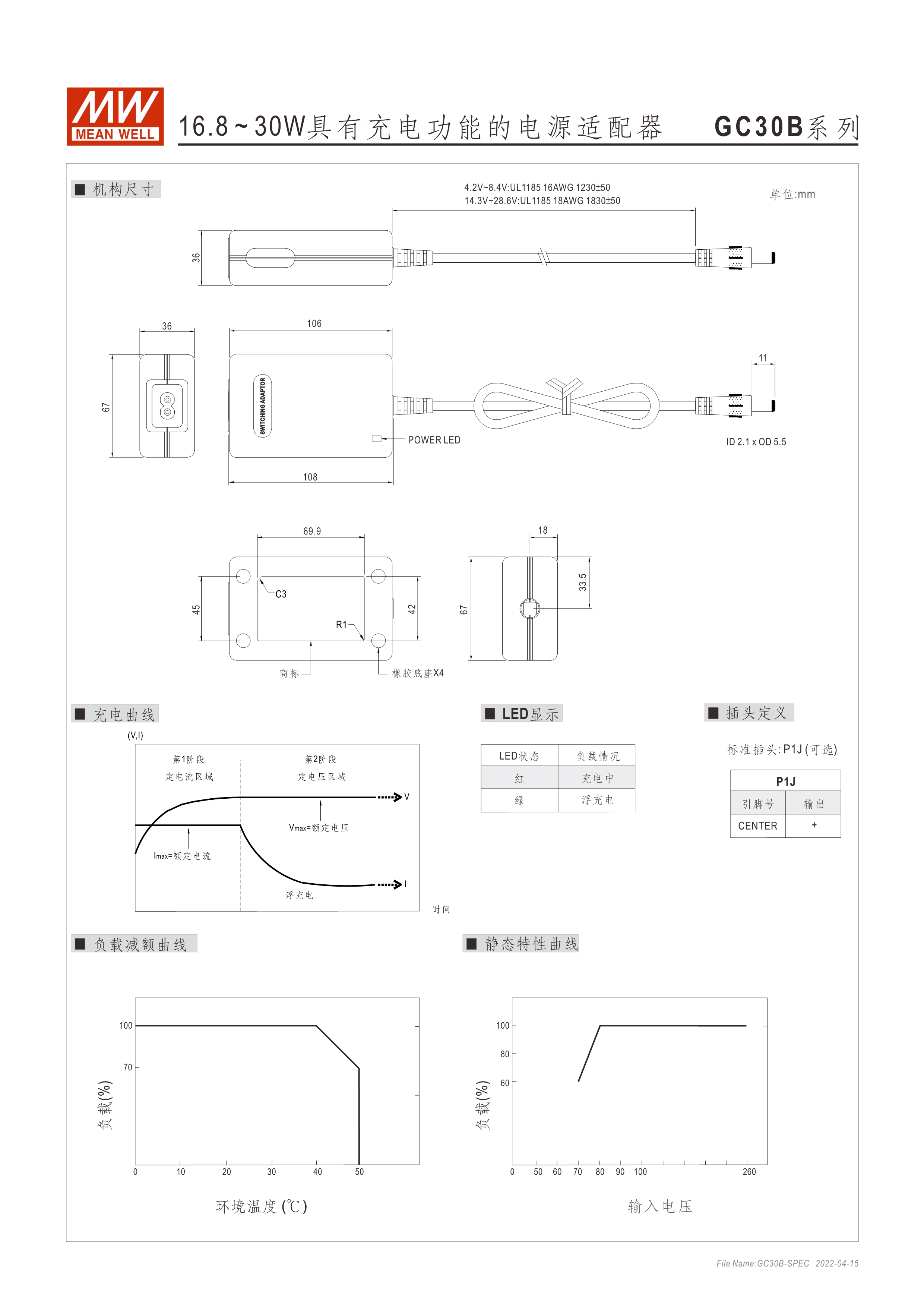 便攜式綠能適配器型充電器 塑膠殼、無(wú)風(fēng)扇自然散熱、使用不燙手 兩段式充電 (C.C./C.V.) 高效低耗 (待機(jī)<1W),低碳節(jié)能減排 AC輸入接口 A型:IEC320-C14、B型:IEC320-C8、 E型:歐插、U型:美插 標(biāo)準(zhǔn)DC輸出接頭 (可訂制其他款式插頭) 2年保固
