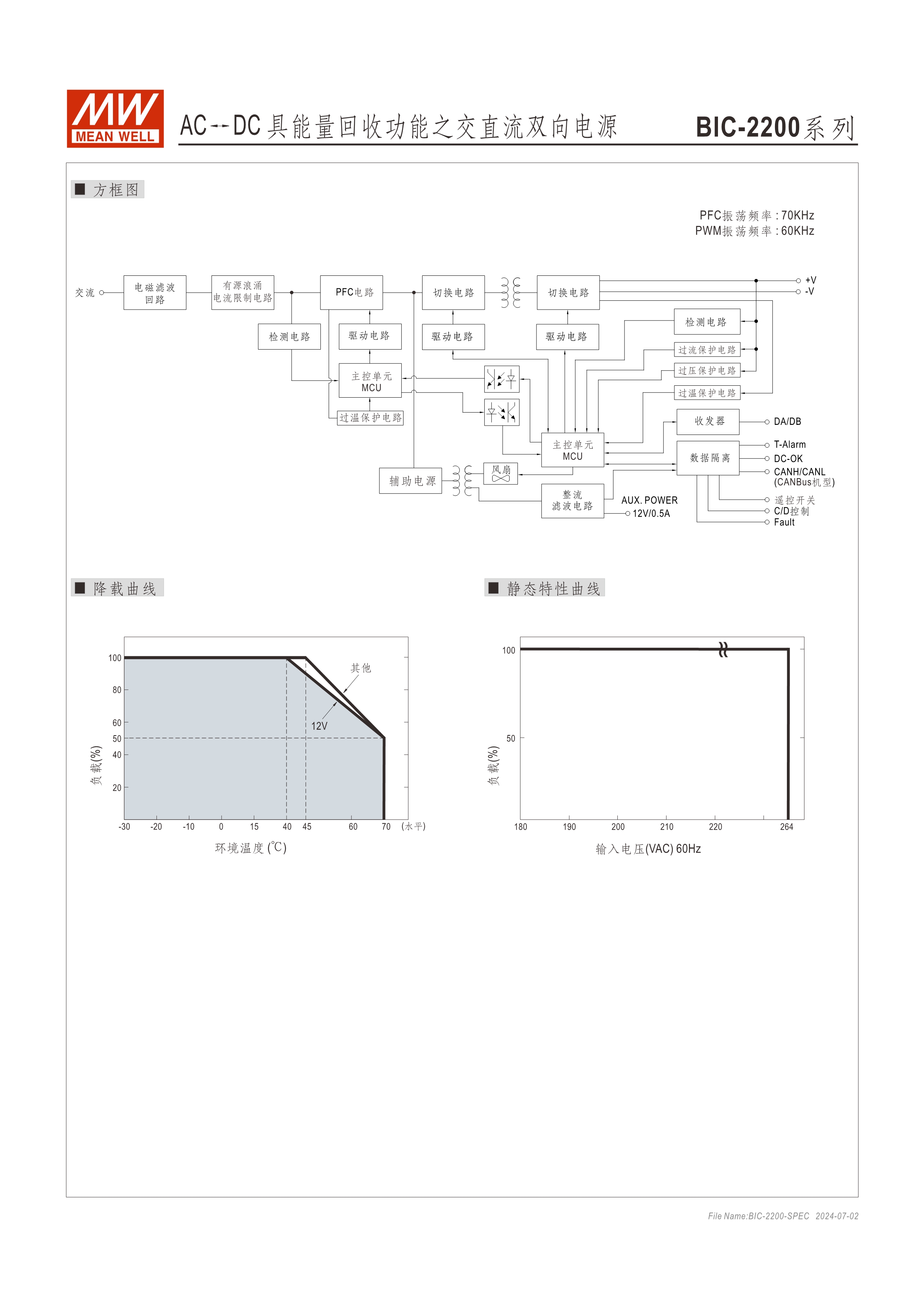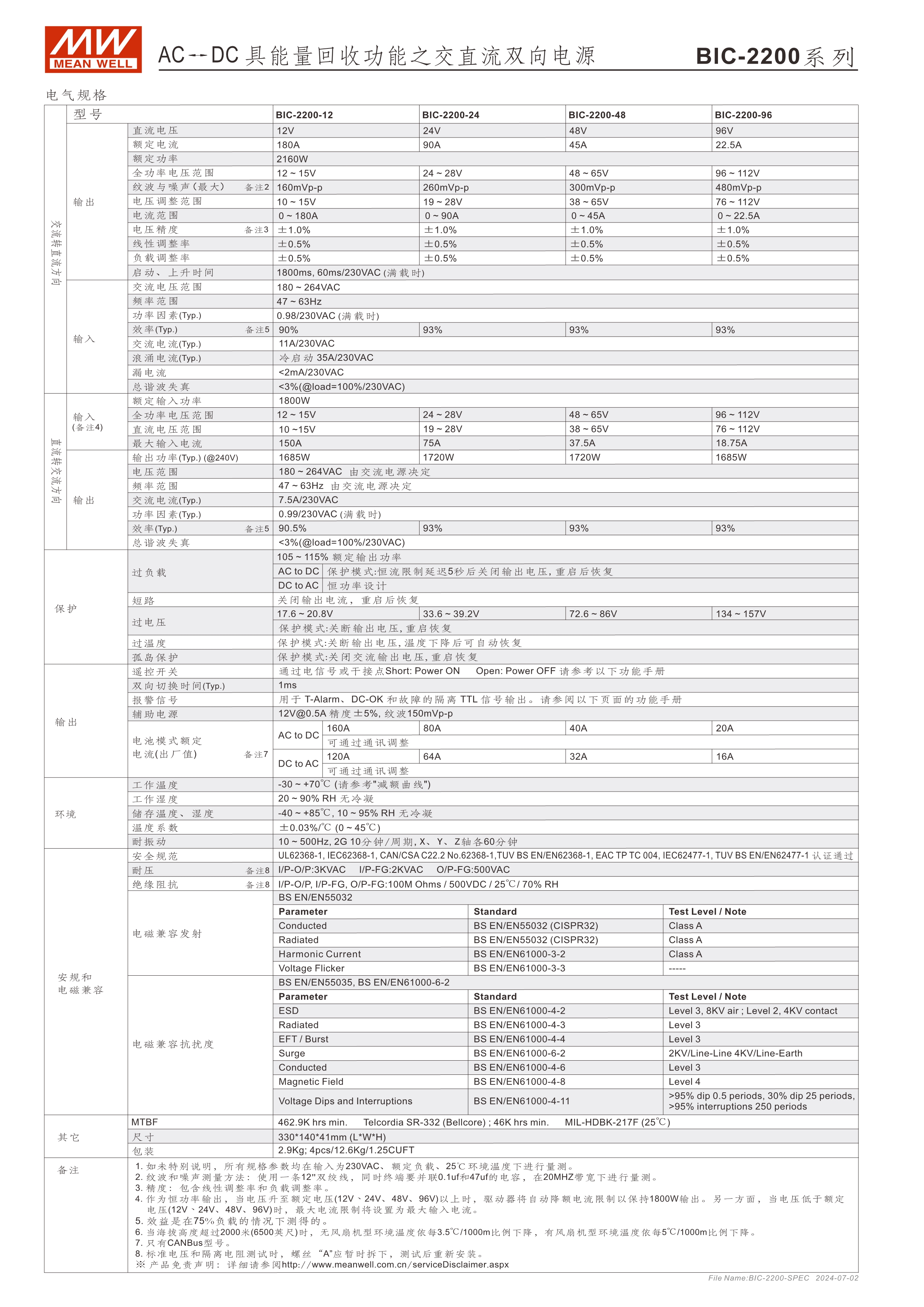系統(tǒng)電源解決方案 (PDF) 低高度1U薄型化設計 全機數(shù)字化控制,雙向轉換效率高達93% 快速雙向切換響應時間<1ms (AC/DC ? DC/AC) CB/UL/TUV 62368法規(guī)認證,電路設計符合IEC 62477法規(guī) 最高可支持5臺并聯(lián)應用,功率擴增至11kW 回饋電網(wǎng)電流總諧波失真<3% 數(shù)字通訊可強制切換充放電模式(選配CANBus機型) 保護功能:主動式孤島保護、AC異常保護、DC過電壓保護、過負載保護、短路保護、過溫度保護 5年保固